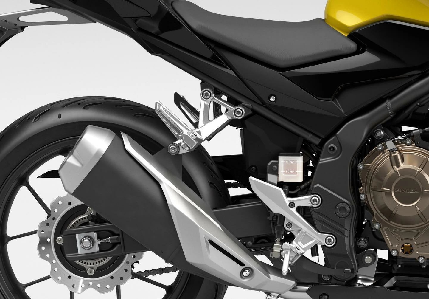 A motorcycle’s frame is the basis for its handling. Stronger and lighter, the CB500F’s diamond-shaped 35mm steel-tube mainframe ties to the engine with four mounts, offering a rock-solid foundation for a superior ride and handling.
