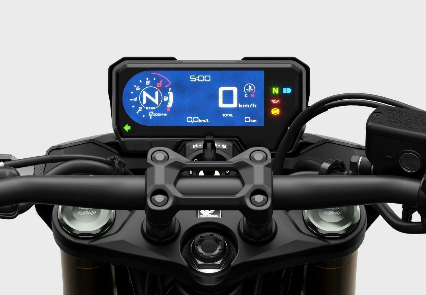 Easy-to-read LCD screen features digital speedometer, tachometer, gear position indicator, clock, odometer, trip meter, real-time and average fuel consumption meters and illuminated engine diagnostic indicators.