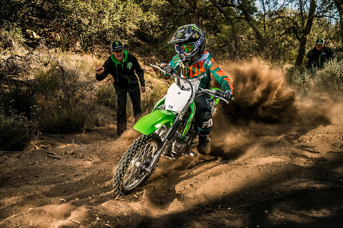 Featuring confident handling, KLX140R motorcycles are the ideal entry into off-road riding. The easy-to-ride KLX140R lineup offers a 144cc engine, plush suspension and a push button electric start, making for great trailblazers.