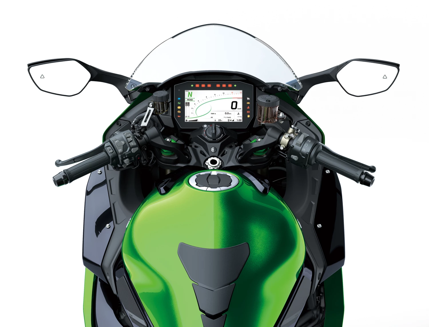 - INSTRUMENTATION – 6.5” TFT Colour Instrumentation: Large, easy-to-read 6.5” full-colour TFT instrumentation adds a high-tech touch to the cockpit. Complementing the multiple display windows and Smartphone connectivity, compatibility with Kawasaki SPIN offers numerous infotainment possibilities.