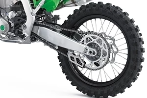 Based on feedback from our factory race teams, the KX450 features a large-diameter front axle shaft 22 mm diameter, which contributes to greater front-end traction. Dunlop MX3S tyres contribute to increased front and rear traction. Top of the fuel tank is designed to allow a flat progression from the seat to the tank, which gives the rider greater freedom of movement when changing riding position. The top surface is slip-resistance for seated grip.