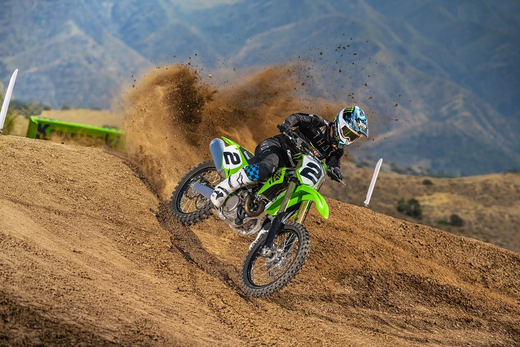 With more Supercross and Motocross championships than any other manufacturer, the KX name is synonymous with winning. The KX450 motorcycle represents the flagship of the KX lineup, built with the sole purpose of dominating the track. Over the past four decades, we’ve learned what it takes to win and stay on top. Our dedication to building the ultimate machine is undeniable, and the KX450 represents this to the fullest.