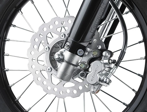 For the ultimate in style, the KX85 features petal shaped discs just like the full size KX250 and KX450 models. A 220mm disc at the front and 184mm at the rear provide massive stopping power.