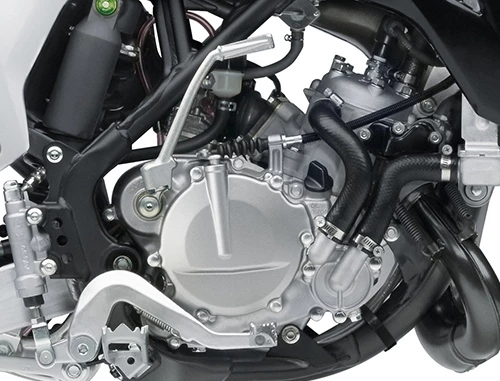 The 85cc 2-stroke liquid cooled high performance engine in the KX85 utilises numerous high performance design features, a low friction single ring piston for high power and sharp throttle response, the cylinder is designed with the Kawasaki KIPS system and the cylinder head features a high performance combustion chamber design. The KX85’s radiator has been built to match the engines performance, working hand in hand with the power output. Keeping it all cool when the racing action is getting hot.