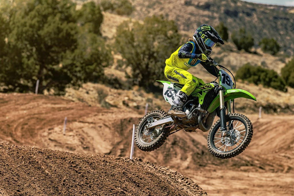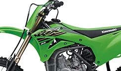 Amateur or professional levels, Kawasaki is dominant in mini-motocrossing, with many of today’s top professional riders getting their start on KX minicrossers. Kawasaki continues this tradition by offering ready to race green meanies. High performance engine and race ready suspension, adjustable handlebar positioning and slim bodywork, the KX85 is the bike to beat.