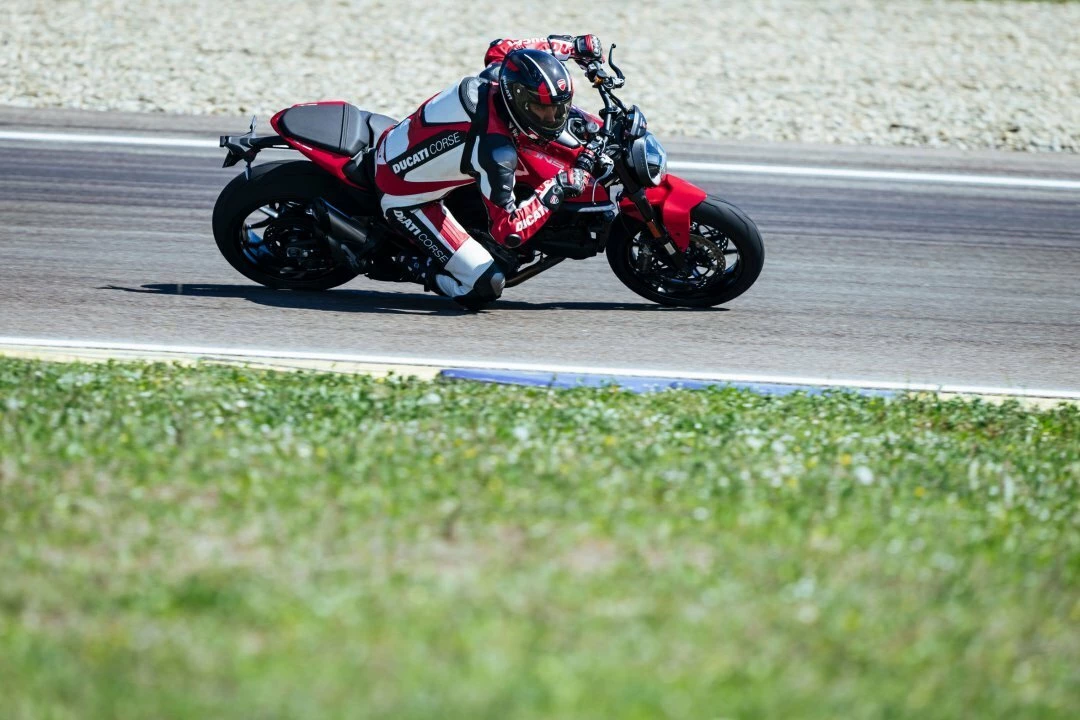 The Superbike derived frame of the new Monster with an aluminium front frame contributes to maintaining the dry weight at just 166 kg. And lightness is key to achieving a bike that is easy to ride, handle, whilst being fast and above all fun.