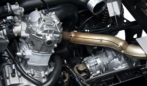 Continuously Variable Transmission (CVT) with a centrifugal clutch delivers smooth acceleration, instant throttle response and dependable engine braking. Convenient dash-mounted final drive switch lets you easily change from 2WD, 4WD, or 4WD with rear differential lock to easily select the right traction mode to match terrain conditions.