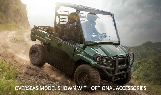 Optimized mid-size chassis offers sure-footed and agile handling performance along with rugged capability. MULE PRO-MX Special Edition side x side will answer the task with grit and muscle, all backed by the industry-leading Kawasaki STRONG 3-Year Limited Warranty. A towing capability of up to 680kg and cargo bed capability of up 317kg means work gets done much faster. Large 25-inch radial tyres give MULE PRO-MX Special Edition side x side the ground clearance to go almost anywhere.