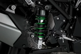 In the front, 2 massive 320mm semi-floating discs are gripped by dual radial-mount, opposed 4-piston, monobloc calipers, delivering strong braking force and superb feel. In the rear, a 250mm disc with twin-piston caliper provides strong braking performance. The IMU-enabled Kawasaki Intelligent anti-lock Brake System – KIBS – is a supersport-grade high-precision multi-sensing ABS brake assistance system that uses high-precision control to modulate brake pressure during sport riding.