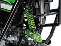 At the rear, the Teryx features Kawasaki’s unique sealed, internal wet brake. Internal components are completely sealed from mud and dust, etc, ensuring uncompromised rear braking performance. The compact size contributes to a favourable ground clearance.