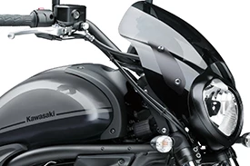 18-inch front and 17-inch rear wheels. The larger front wheel provides natural, light handling. Tyres provide the right blend of handling and grip. The Vulcan S Cafe is ABS equipped, with front 300mm front disc slowed by 2 piston calipers the rear ABS disc brake is fitted with a single piston caliper for ample stopping power. The swingarm’s D-shaped cross-section gives it a pipe-like design that matches the frame, and contributes to the high-quality appearance.