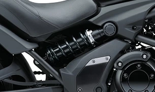 The pipe perimeter frame is a key component of the Vulcan S look. The design of the frame, rear suspension and swingarm create an integrated line running from the front of the bike to the rear hub. A pipe frame of high-tensile steel gives the bike a lightweight appearance. Tear drop-style fuel tank adds a cruiser-style touch. With its 14 litre tank capacity and the Parallel Twin engine’s good fuel economy, the long range offered by the Vulcan S means riders can go longer between fill-ups—convenient in town, and reassuring when out on a daytrip.