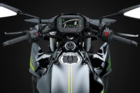 The new 4.3” all-digital TFT colour instrumentation – a Kawasaki first in the 650cc class – gives the cockpit a high-tech, high-grade appearance. The TFT (thin-film transistor) delivering a high level of visibility. The screen’s background colour is switchable (black or white), and screen brightness adjusts automatically to suit available light.The new meter also offers additional features unavailable on the previous model.